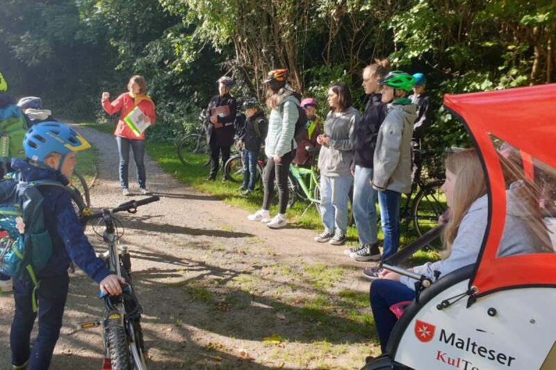 Im Sommer 2021 konnten wir mit dem Malteser Hilfsdienst Hildesheim in ein neues Projekt starten. Das Projekt KulTour(en) bringt Menschen mit Beeinträchtigung zu Kulturveranstaltungen – und zwar mit einer Fahrradrikscha! Die Rikscha kann man auch für Kulturrouten nutzen: Dabei werden Kunst und Kultur im öffentlichen Raum angesteuert. Bislang gibt es drei Routen. Tinka Dittrichs und Benita Hieronimi haben uns die Wasserroute vorgestellt. Dazu fuhren wir mit unseren Fahrrädern und der Rikscha.